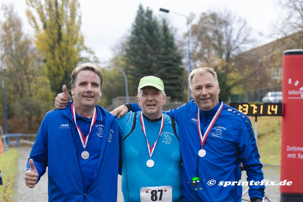 Für 2 Läuferinnen und 6 Läufer unserer Laufgruppe ging es am 27. Oktober zum 25. Jubiläum des Hochschullaufs nach Vorpommern. Der 25. Hochschullauf in der Hansestadt Stralsund war zugleich die 14. und vorletzte Station im diesjährigen Laufcup Mecklenburg-Vorpommern. Beim Hauptlauf über anspruchsvolle 10 Meilen finishten 23 Läuferinnen und 83 Läufer. Auf der 8-Kilometerstrecke erreichten 20 Läuferinnen und 39 Läufer das Ziel. Windiges Wetter und kühle 6 Grad begrüßten die Läuferinnen und Läufer am Strelasund und machten ihnen das Laufen, vor allem auf der ersten Hälfte, mehr als schwer. Der starke Wind und die vielen kleinen Anstiege ließen schnell die ersten Kräfte schwinden. So knackten im Hauptlauf auch nur Adrian Karnitzki von FIKO Rostock in 56:40 min und Zero Mekonen von Turbine Neubrandenburg mit 59:26 min die Einstundenmarke. Hier setzten sich unsere Läuferinnen und Läufer trotz widriger Bedingungen hervorragend in Szene. Bei den Frauen bestätigte Ulrike Schomann als Vierte in der Gesamtwertung und Zweite der W45 in 1h17:58 ihre sehr gute Form. Bei den Männern ist Frank Tschersich mit 1h06:41 schnellster Schweriner. Frank wird mit dieser Zeit Sieger seiner Altersklasse M35 und toller Gesamtdreizehnter. In der M60 laufen Lothar Gajek (1h17:22) und Harald Tschersich (1h18:20) als Zweiter und Dritter durchs Ziel. In der Altersklasse M50 erreichen Christian Stapel und Frank Riebschläger ihre besten Saison-Platzierungen. Christian wird in 1h33:47 Fünfter, eine Sekunden und einen Platz dahinter läuft Frank Riebschläger durchs Ziel. Fred Kiesendahl finishte nach einer verletzungsbedingten längeren Laufpause in 1h36:49 als Achter seiner M55. Andrea Bastek konnte sich auf der 8-Kilometerstrecke über ihren ersten Laufcupsieg freuen und gewann ihre Altersklasse W60 in 47:03 min.