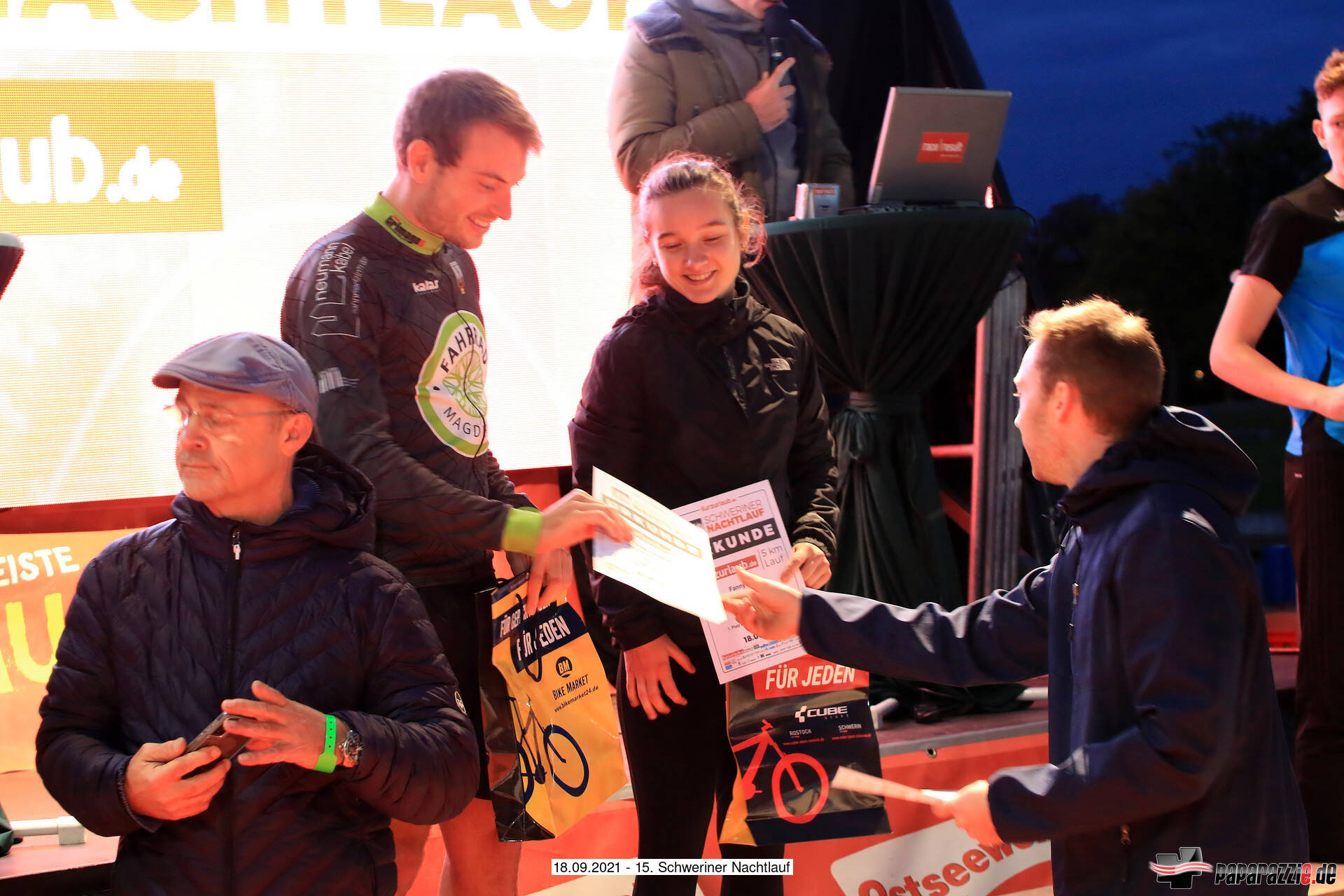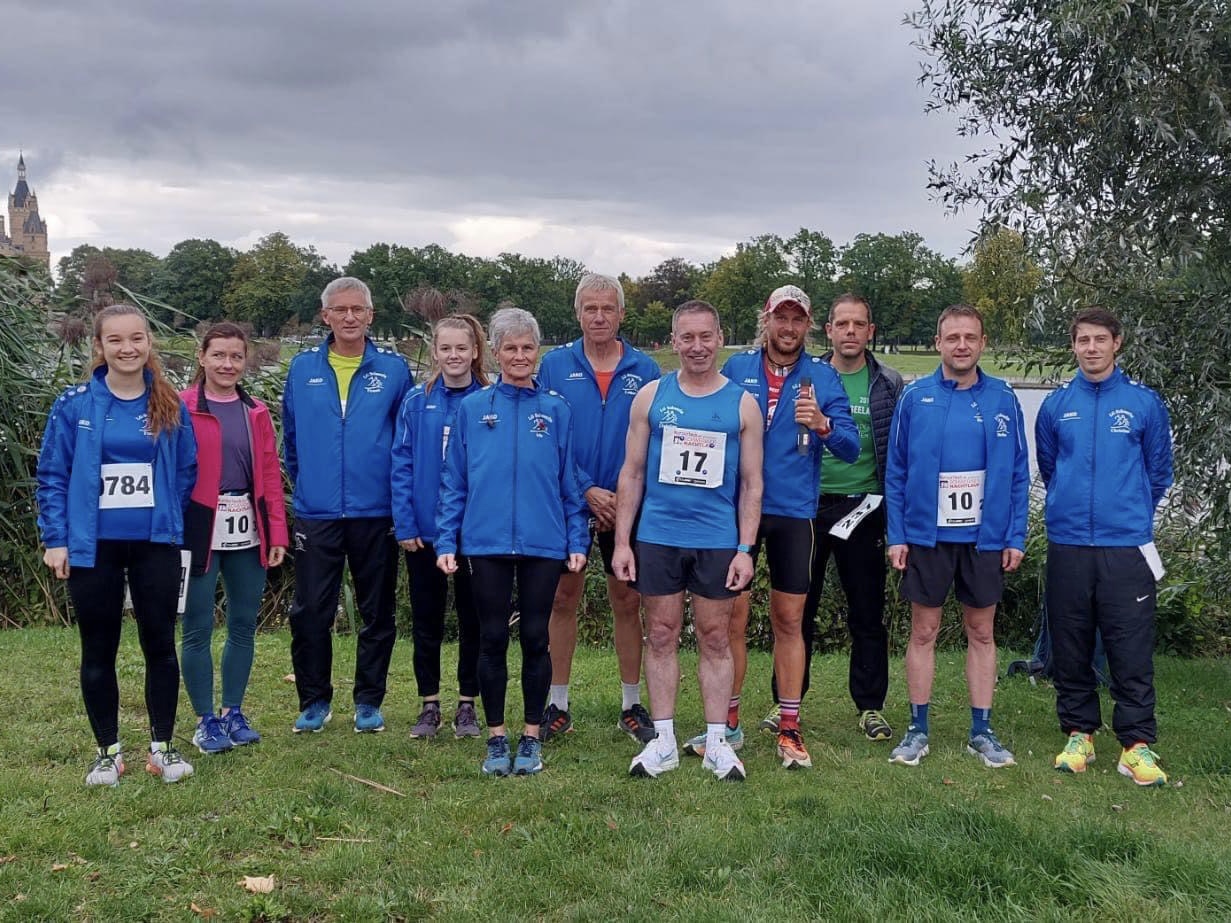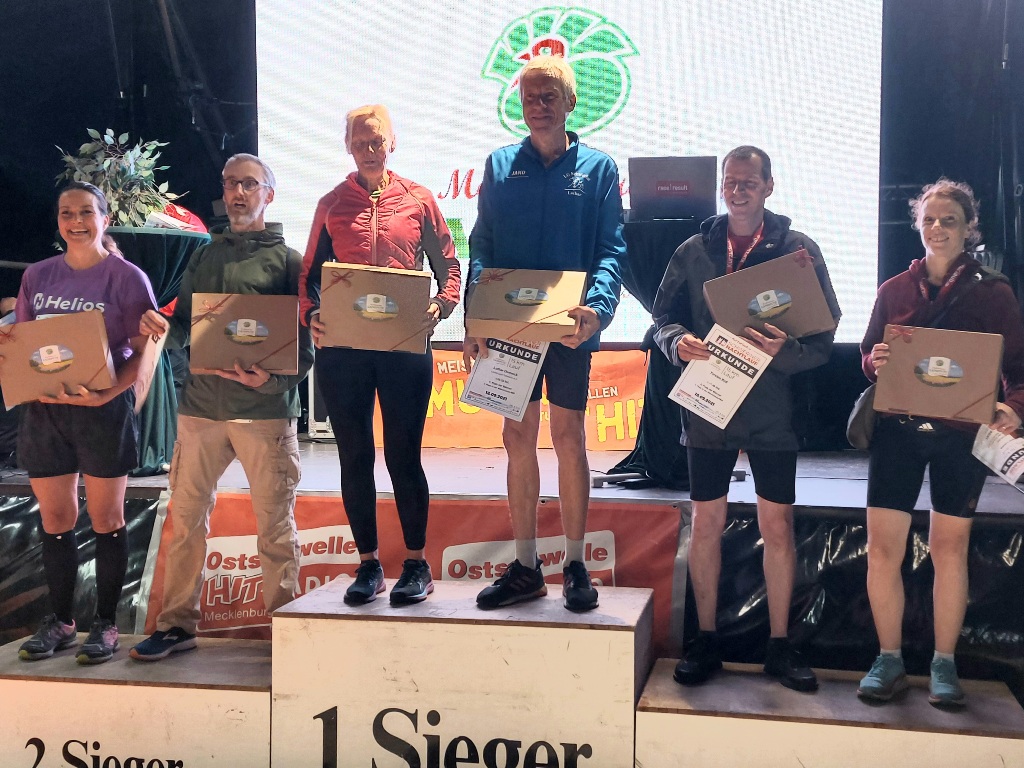 Auf der 5 Kilometerrunde werden Fanny Riese (WJ U20) in 20:51 Minuten und Sven Schenk (M) mit 15:50 Minuten jeweils Zweite in der Gesamtwertung und gewinnen ihre Altersklassen. Paddy Paul wird mit 16:46 Minuten Gesamtvierter und Sieger seiner M40. Steffi und Andreas Prahl erreichen jeweils den 8.Platz ihrer W35 (26:48 Minuten) bzw. M35 (26:49 Minuten), Iris Klüßendorf wird Dritte in der W55 (27:53 Minuten) und Amanda Lube wird Zweite ihrer WJ U16 (29:38 Minuten). Über 10 Kilometer wird Stefan Lange Gesamtdritter und Zweiter der M40 bei 35:48 Minuten. Christian Briesen gewinnt seine M55 mit 44:10 Minuten und Norbert Kaletzki läuft 46:35 Minuten als Sieger seiner M65. Unser M60-Läufer Lothar Domnick umrundet den 5-Kilomterkurs 3-mal wird in tollen 1h08:58 Gesamtsieger über 15 Kilometer. Anja Wittwer, hier für ihren Hauptverein SISU Schwerin e.V. startend, wird in 1h23:21Gesamtsiegerin über 20 Kilometer. Hier belegt Sebastian Scholz mit 1h31:17 den siebenten Platz in der Gesamtwertung und wird Dritter seiner M35. Bei den Staffeln über 4 x 5 Kilometer gelingt die Mission Titelverteidigung in der Besetzung Paddy Paul, Stefan Lange, Christian Schönke und Sven Schenk. Unsere Staffel absolviert die 4 Runden in 1h10:20. Unsere Mixed Team rundet mit 1h19:39 das sehr gute Ergebnis mit Fanny Riese, Stefan Dahl, Diana Rohrbeck und Frank Leonhardt als drittbeste Staffel ab.