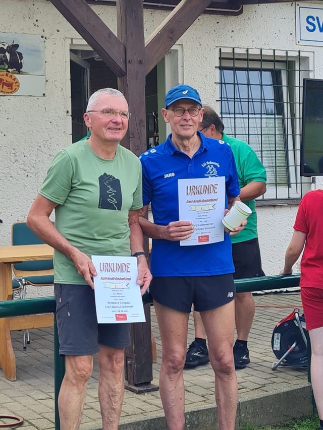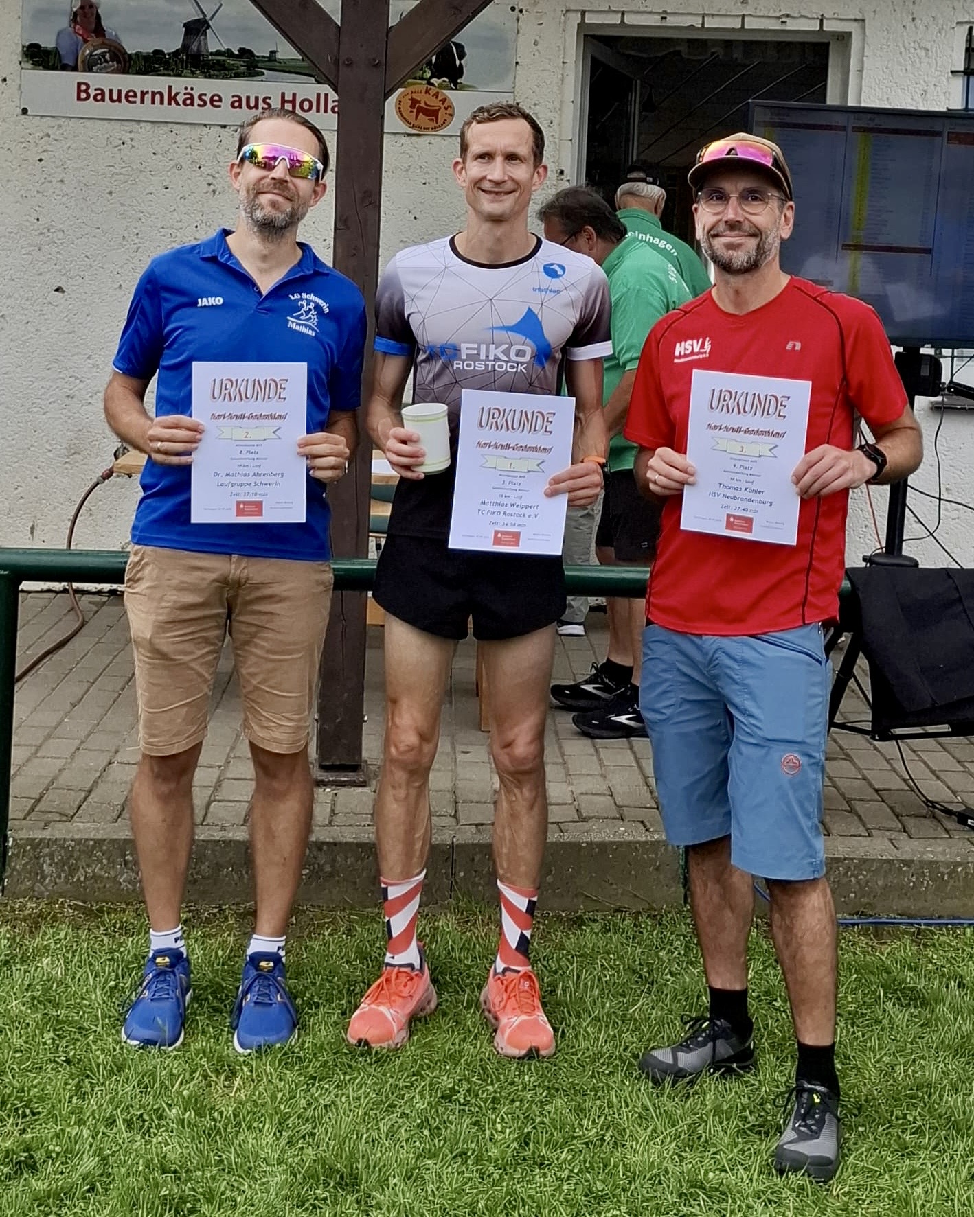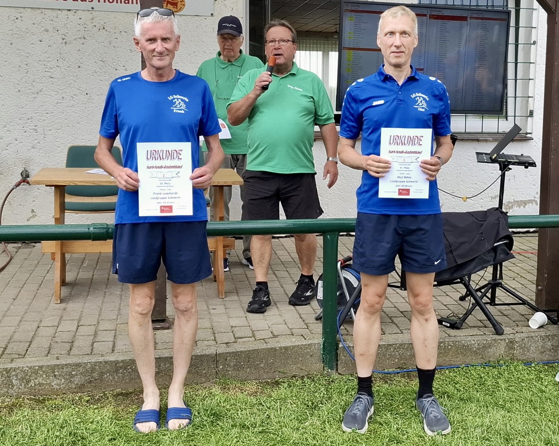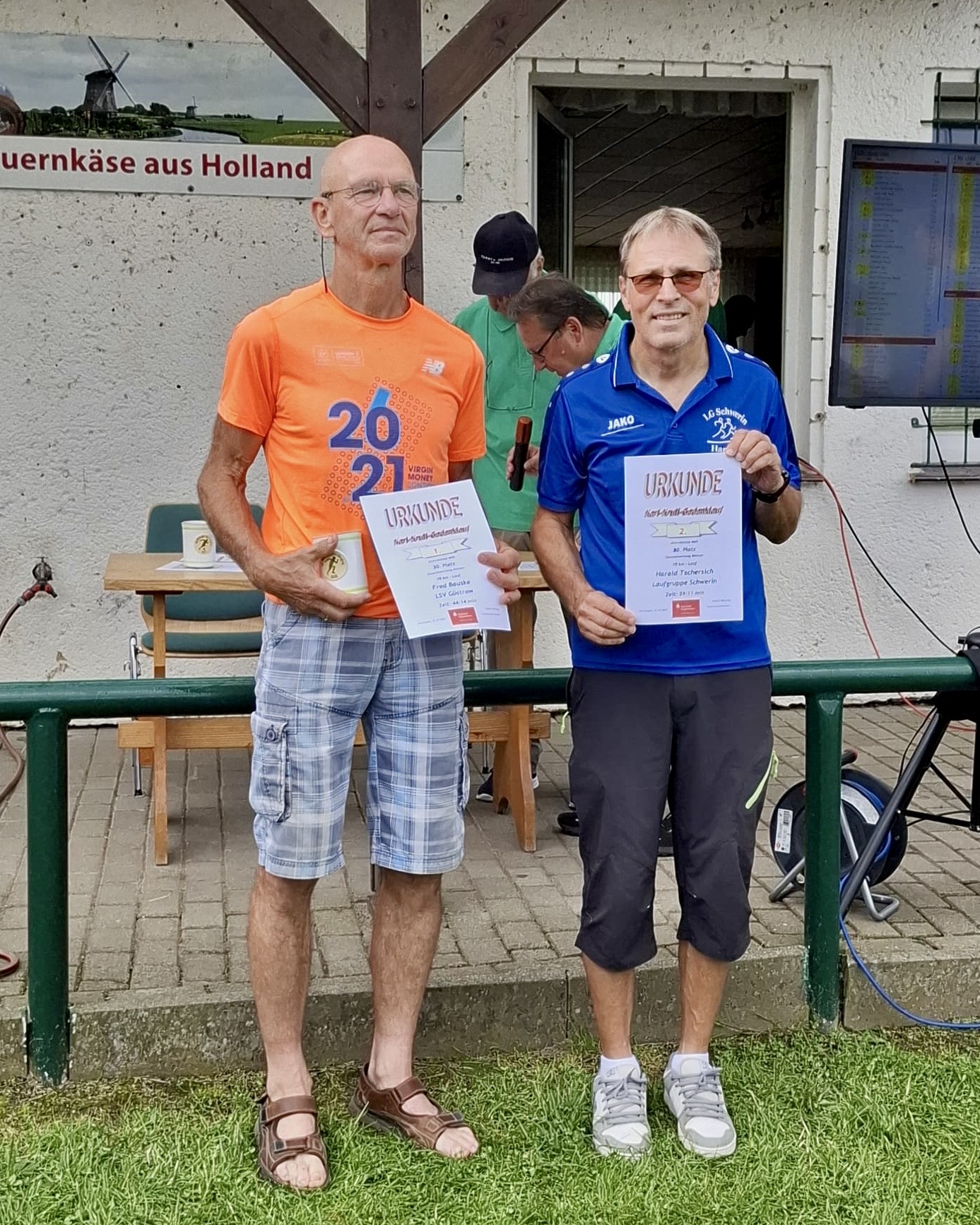 In der M60 waren mit Frank Leonhardt, Olaf Böhm und Lothar Domnick gleich drei Läufer auf der Strecke. Frank erreicht nach 42:34 Minuten als Zweiter das Ziel, dahinter werden Olaf (45:56 min) Dritter und Lothar (53:41 min) Sechster. Harald Tschersich belegt mit 59:11 Minuten den 2. Rang seiner M65. Gemeinsam in 1:02:34 h liefen Sarah und Christian Briesen als Neunte ihrer W45 bzw. Sechster seiner M55 in den Cup-Wertungen über die Ziellinie.