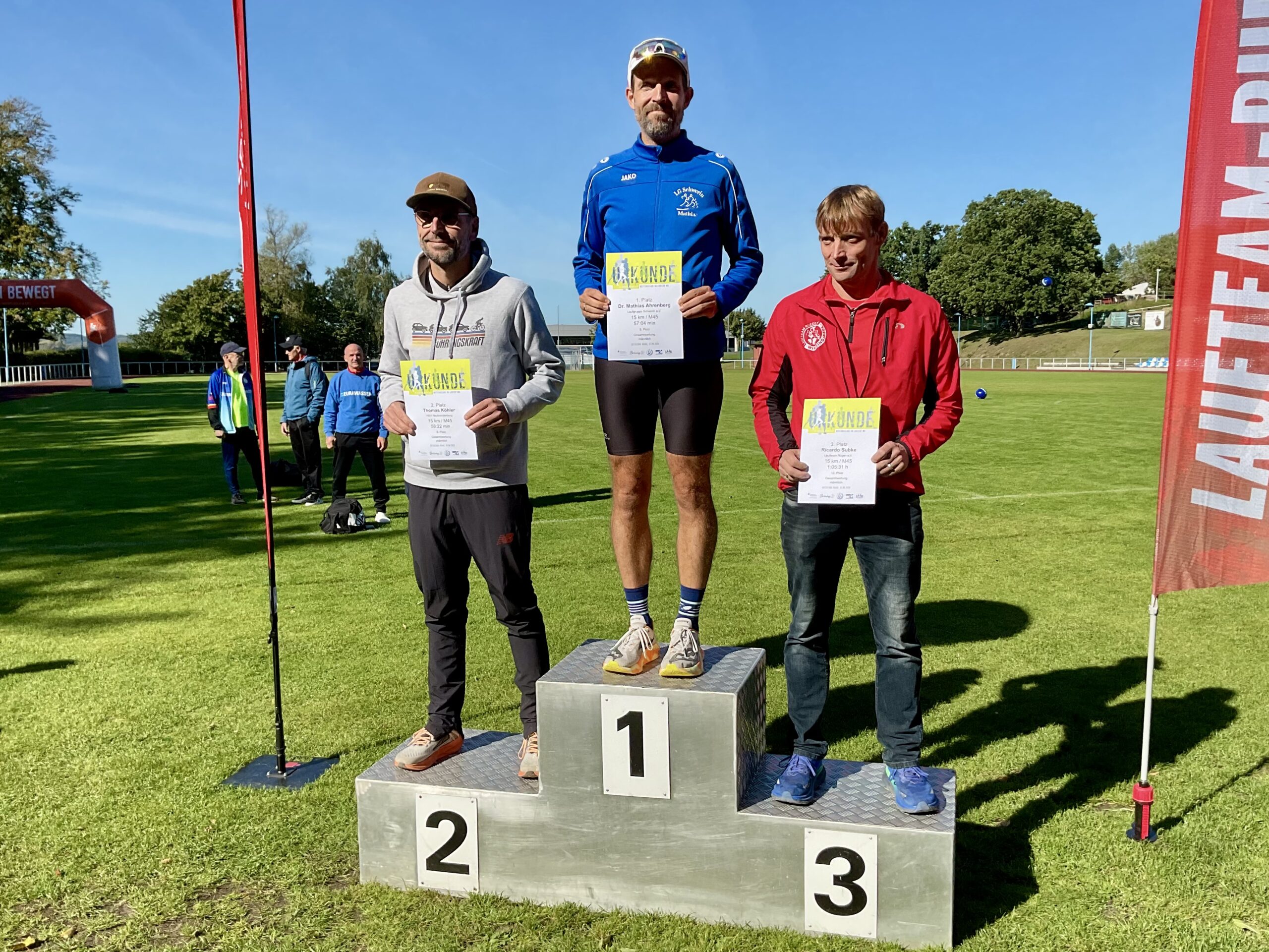 Jana Ahrenberg überzeugte mit einem starken Lauf und wurde in 1:11:36 Stunden Gesamtzweite sowie Zweite ihrer Altersklasse (W35). Ihr Ehemann Mathias Ahrenberg blieb in 57:04 Minuten deutlich unter der 1-Stunden-Marke und erreichte als Gesamtfünfter das Ziel. Damit holte er den Altersklassensieg in der M45.