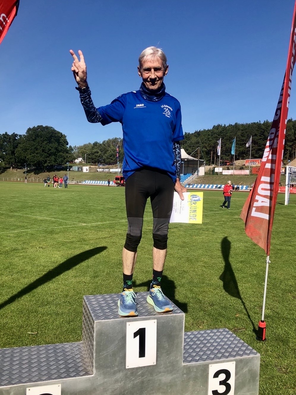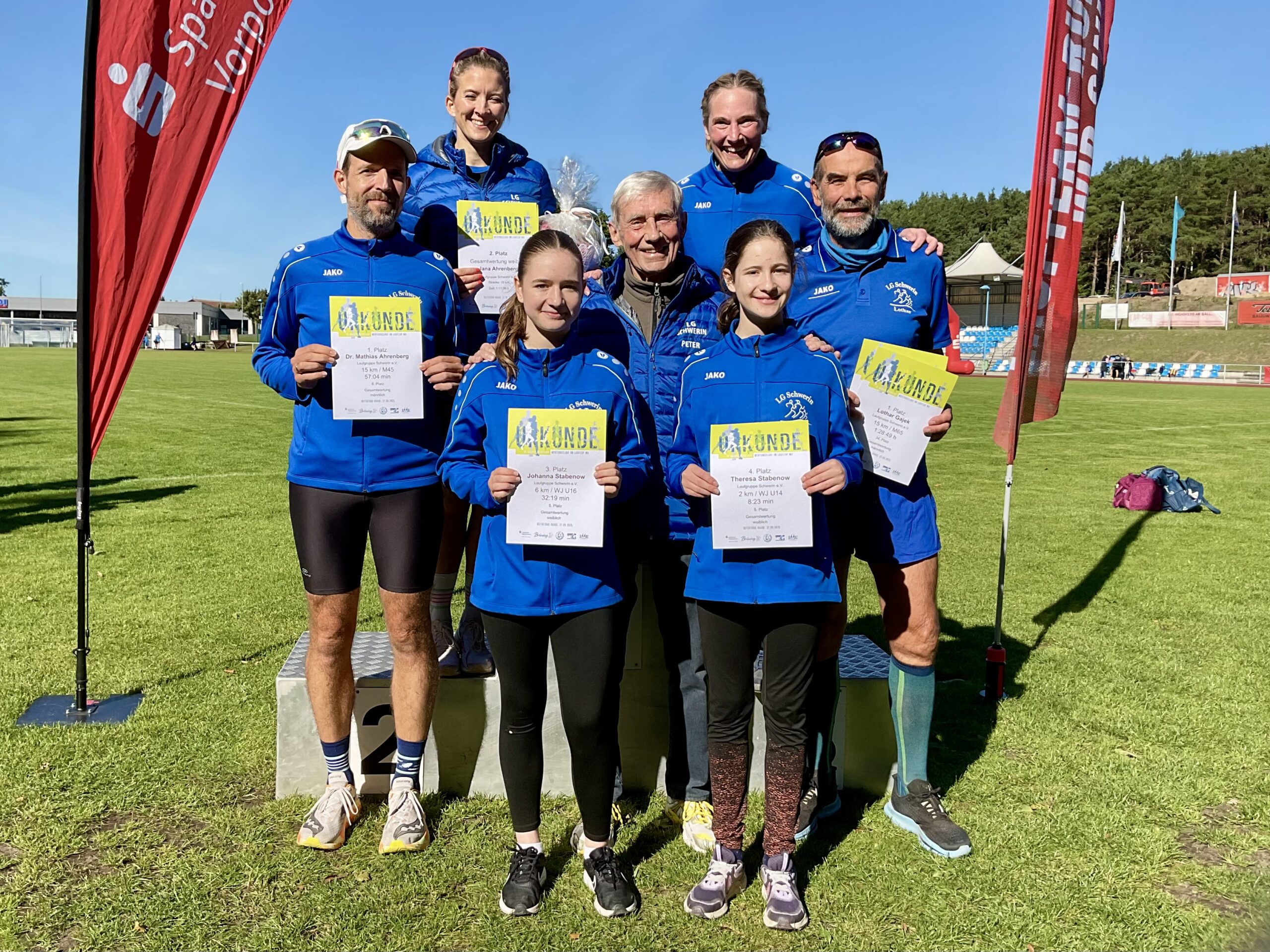 Unser „Altmeister“ Peter Wiesner lief in 1:02:53 zum Sieg in der M85 und sicherte sich damit vorzeitig den Gesamtsieg im Laufcup Mecklenburg-Vorpommern – eine herausragende Leistung!