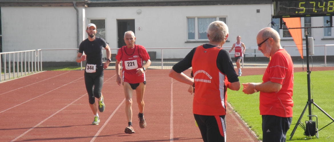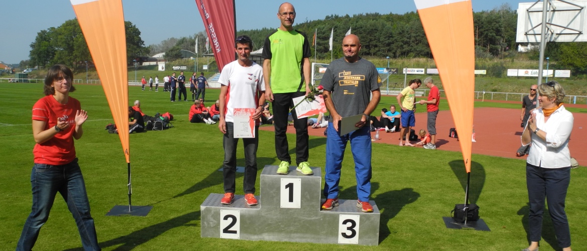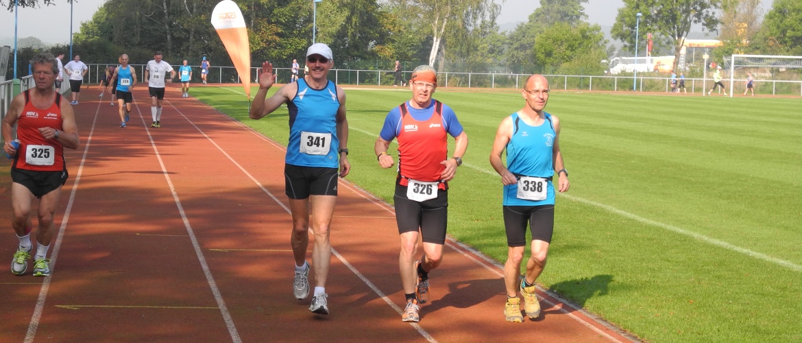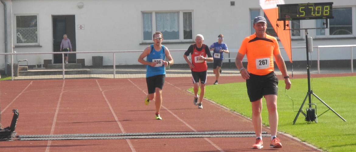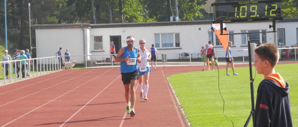 Für die 15km-Läufer_innen ging es nach 1000m im Stadion und einem weiteren Kilometer auf einen teilweise crossähnlichen Rundkurs von 4km, der 3mal zu bewältigen war. Anschließend ging es wieder einen Kilometer ins Stadion. Unsere M30-Läufer Mathias Ahrenberg und Frederic Werner bestimmten von Anfang das Geschehen mit. Am Ende überquerte der frühere mehrfache Gesamtsieger im Landeslaufcup Mathias Ahrenberg in 57:11min als Erster die Ziellinie. Frederic Werner kam 40 Sekunden später als hervorragender Gesamtdritter ins Ziel. Damit fuhren die Männer ihr bestes Saisonergebnis im laufenden VR-Laufcup 2014 ein. Da der Gesamtzweite Jan-Henrik Lange aus Greifswald ebenfalls in der M30 startete, gab es im Gesamteinlauf und der M30 identische Podestplätze. Mathias Ahrenberg nach seinem Sieg: „Ganz langsam geht es mit mir läuferisch wieder bergauf. Heute passte die Tagesform, was glücklicherweise zum Sieg gereicht hat. Es war aber ein harter Kampf“. Bei den Frauen holte sich Nicole Müller ihren dritten Saisonsieg. Nach 1h34:53 überquerte sie als Altersklassensiegerin der W30 die Ziellinie. Bei den Männer gewann Torsten Gunia seine Altersklasse M50 in einer Zeit von 1h03:28. Für Sven Jonas und Lothar Gajek gab es die Plätze vier und sechs in der M55. Sven kam nach 1h08:47 ins Ziel und Lothar 29 Sekunden später. Horst Schöne erreichte in 1h47:55 den vierten Platz in der M70. Für M75-Läufer Dietrich Eggers ging die10km-Strecke in die Cupwertung. Hier ging es gleich aus dem Stadion zum Rundkurs, dieser wurde dann von den Läuferinnen und Läufern 2mal umrundet und dann ging es analog zur 15km Strecke wieder ins Stadion. Dietrich belegte in einer Zeit von1h33:46 den fünften Platz in dieser Altersklasse.